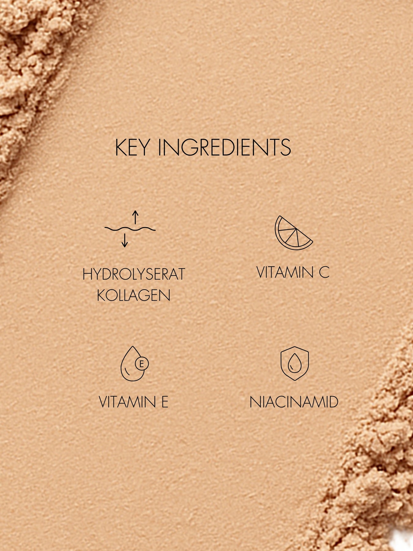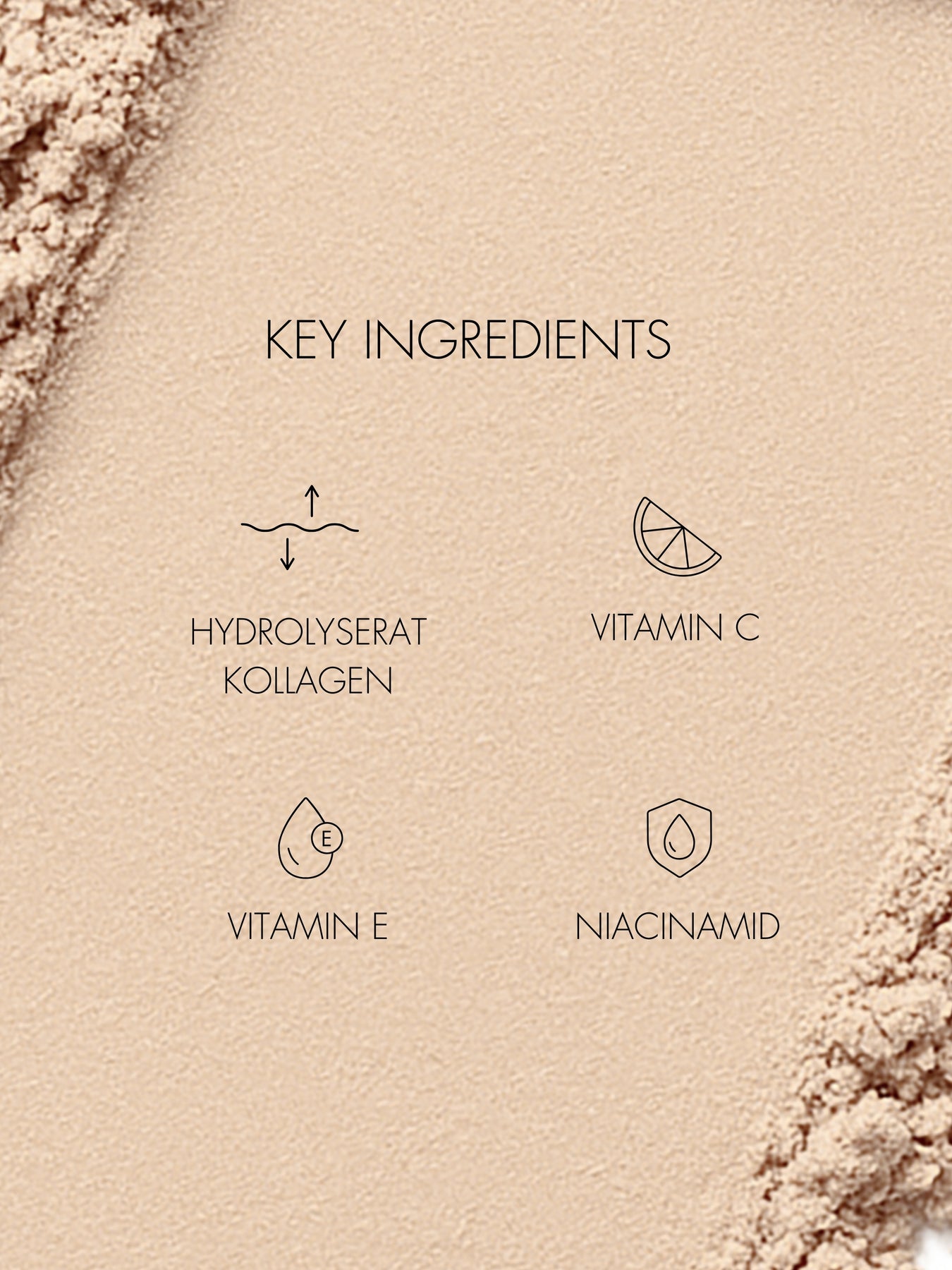 Miracle Powder fungerar utmärkt för torr hud och rynkor tack vare sin lystergivande och utslätande finish. Den är berikad med C-vitamin och kollagen som återfuktar och skyddar hudbarriären.