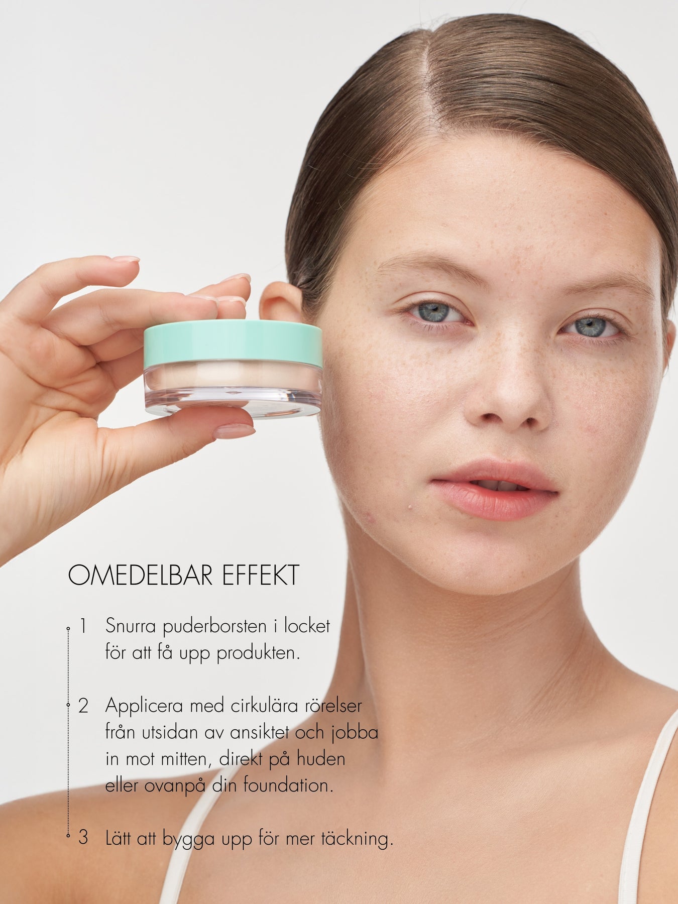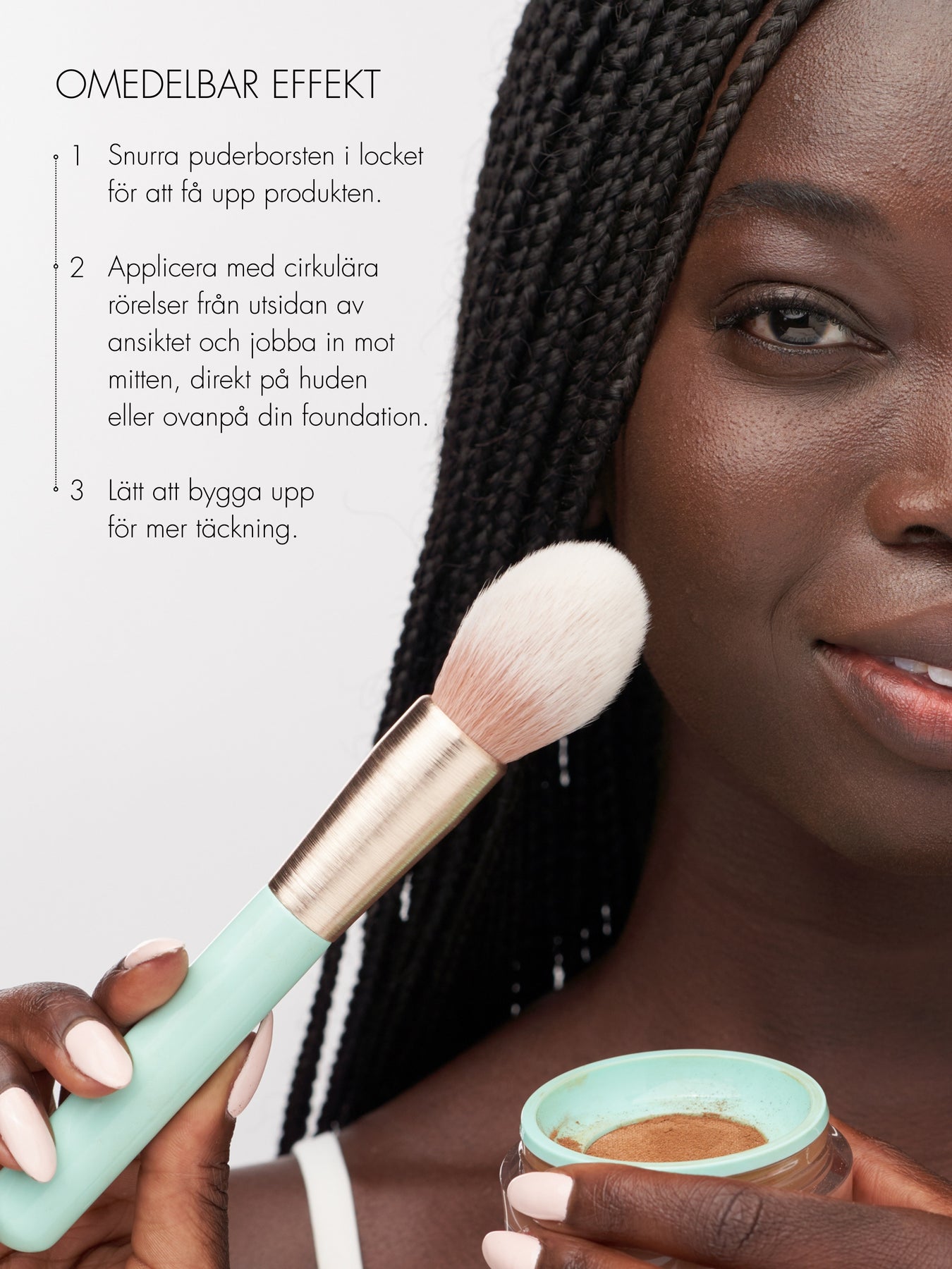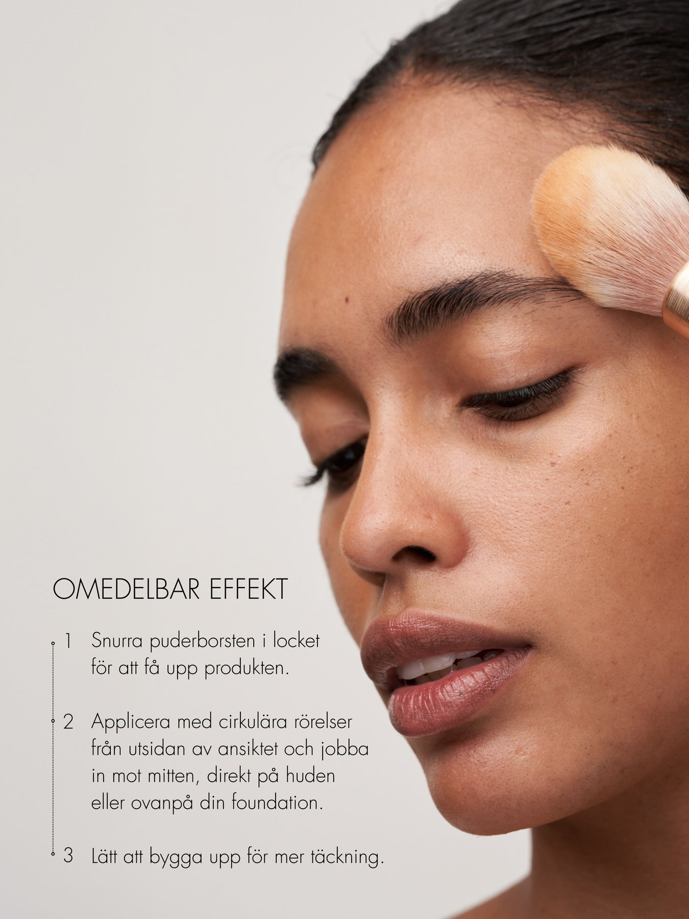 Du kan applicera Miracle Powder ovanpå din foundation för att fixera den. Vi rekommenderar att du applicerar den med vår Powder Brush.